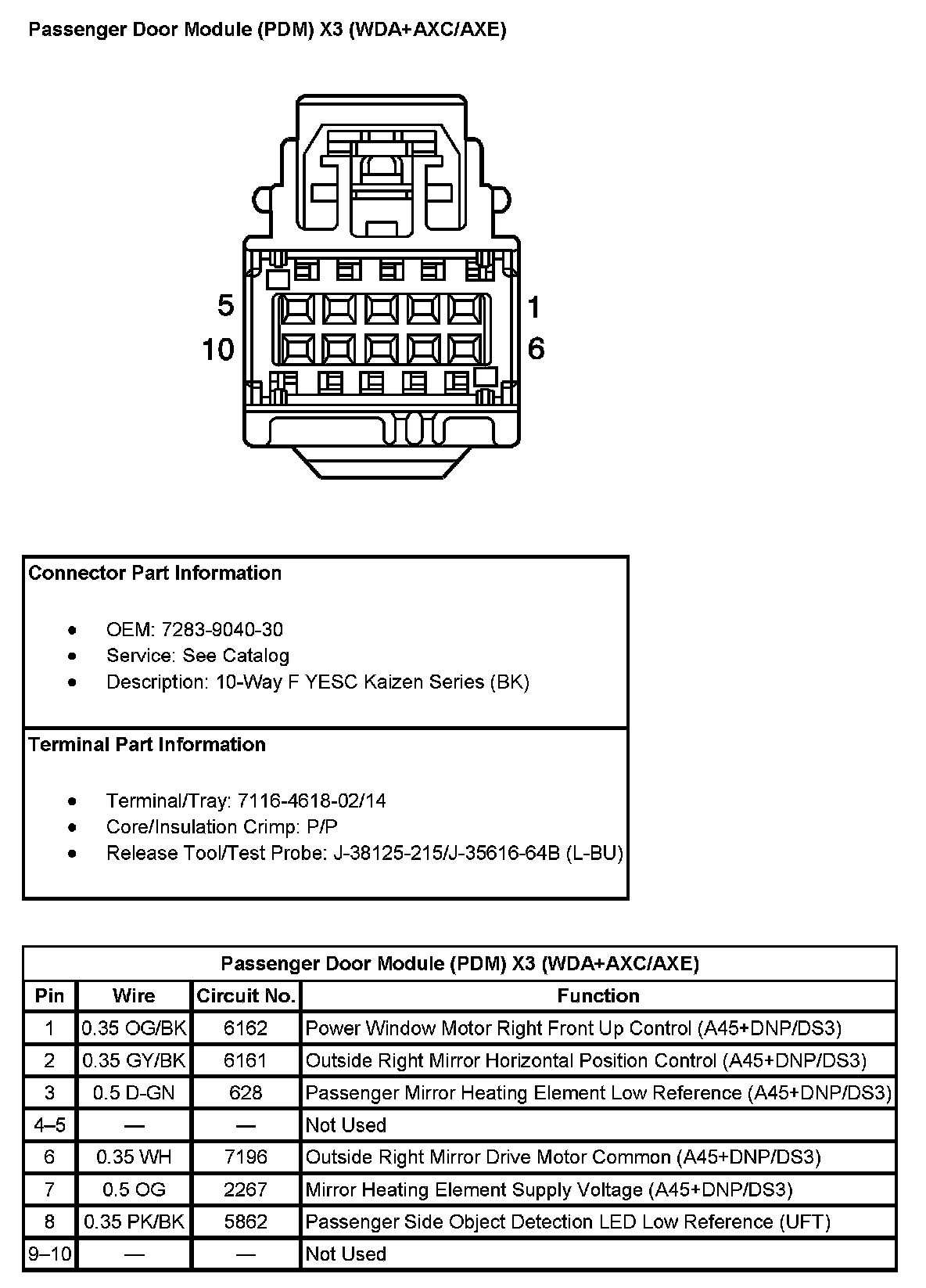 Passenger Door Module (PDM) X3 (With RPO Code WDA+AXC/AXE) Pin 1 To 10:
