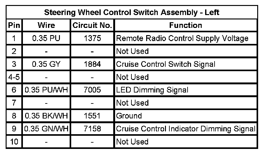 Steering Wheel Control Switch Assembly - Left