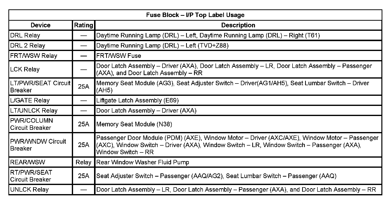 Fuse Block - I/P Top Label Usage: