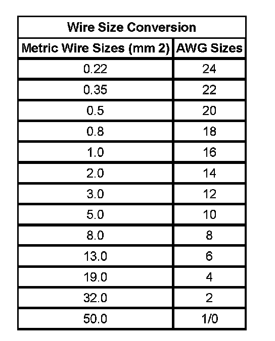 Wire Size Conversion: