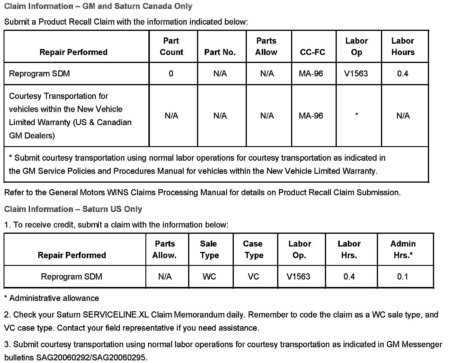 The General Motors Courtesy Transportation Program is intended to minimize customer inconvenience when a vehicle requires a repair that is covered by the New Vehicle Limited Warranty. The availability of courtesy transportation to customers whose vehicles are within the warranty coverage period and involved in a product recall is very important in maintaining customer satisfaction. Dealers/retailers are to ensure that these customers understand that shuttle service or some other form of courtesy transportation is available and will be provided at no charge. Dealers/retailers should refer to the General Motors Service Policies and Procedures Manual for courtesy transportation guidelines (Saturn US retailers should refer to GM messenger bulletins SAG20060292/SAG20060295 for Courtesy Transportation guidelines).