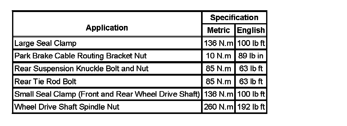 Fastener Tightening Specifications: