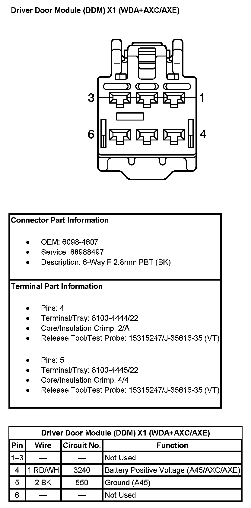 Driver Door Module (DDM) X1 (With RPO Code WDA+AXC/AXE) Pin 1 To 6: