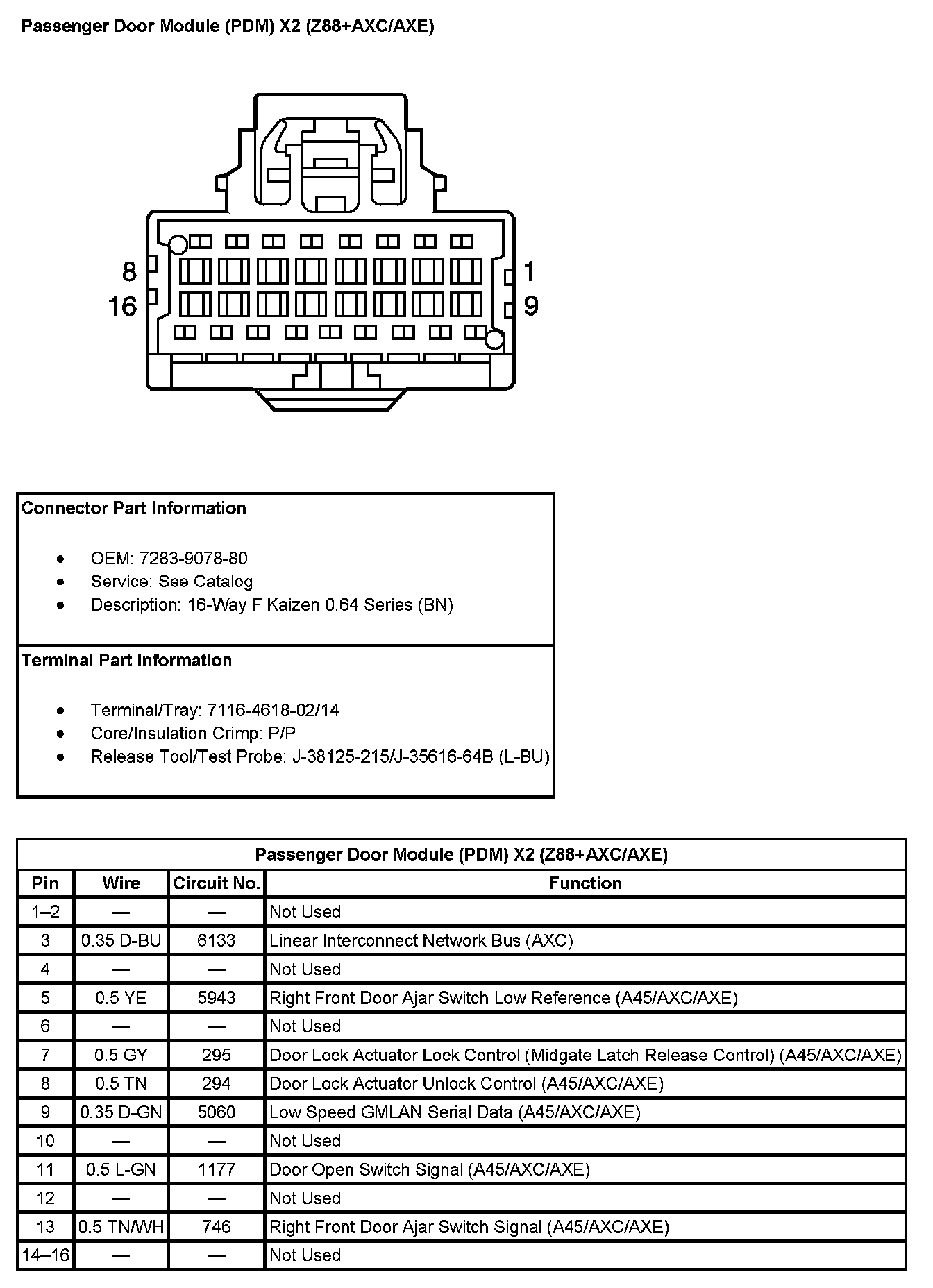 Passenger Door Module (PDM) X2 (With RPO Code Z88+AXC/AXE) Pin 1 To 16: