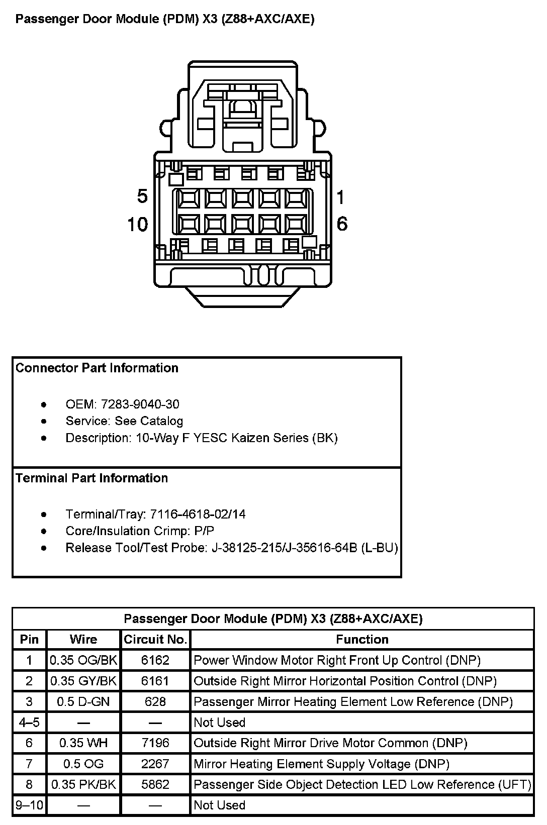 Passenger Door Module (PDM) X3 (With RPO Code Z88+AXC/AXE) Pin 1 To 10:
