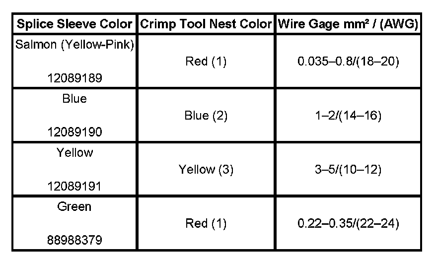 4. Select the proper DuraSeal splice sleeve according to the wire size. Refer to the above table at the beginning of the repair procedure for the color coding of the DuraSeal splice sleeves and the crimp tool nests.