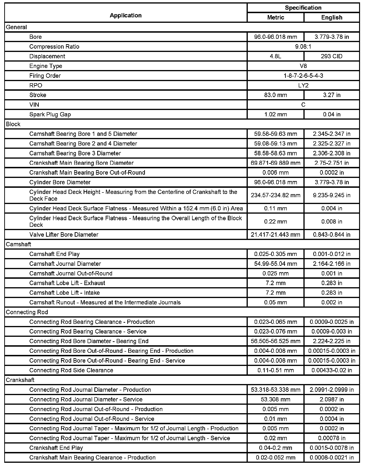 Engine Mechanical Specifications (RPO LY2 VIN C) (Part 2):