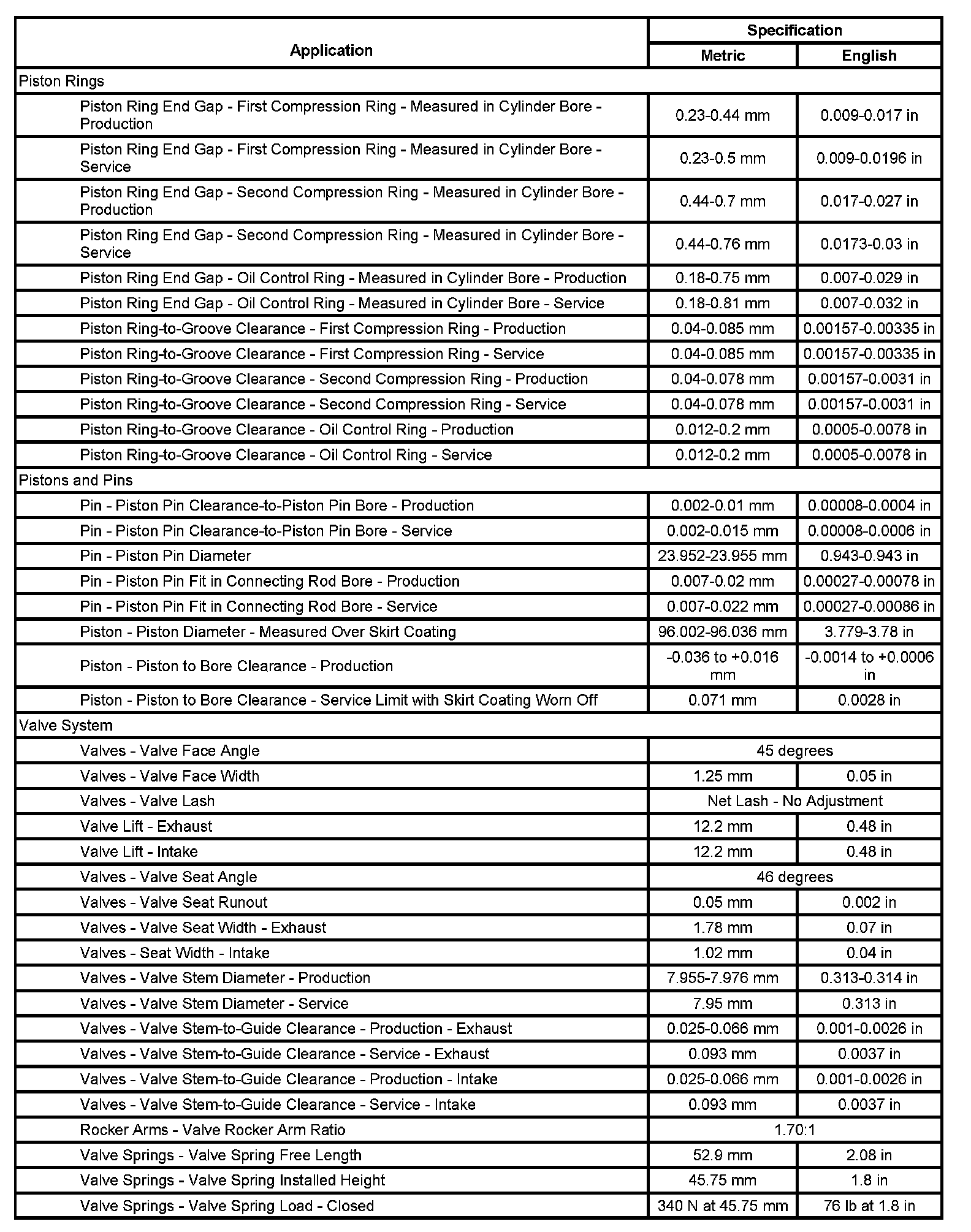 Engine General Specifications & Service Limits