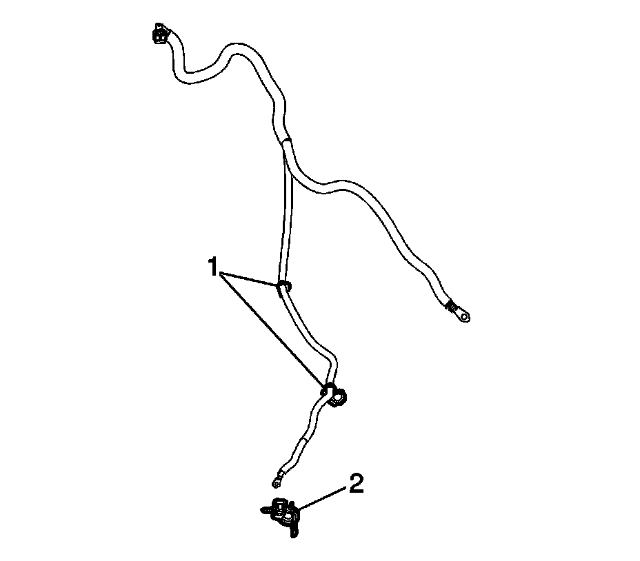 2. Slide the NEW battery current sensor (2) up onto the negative battery cable to the location previously marked during removal.