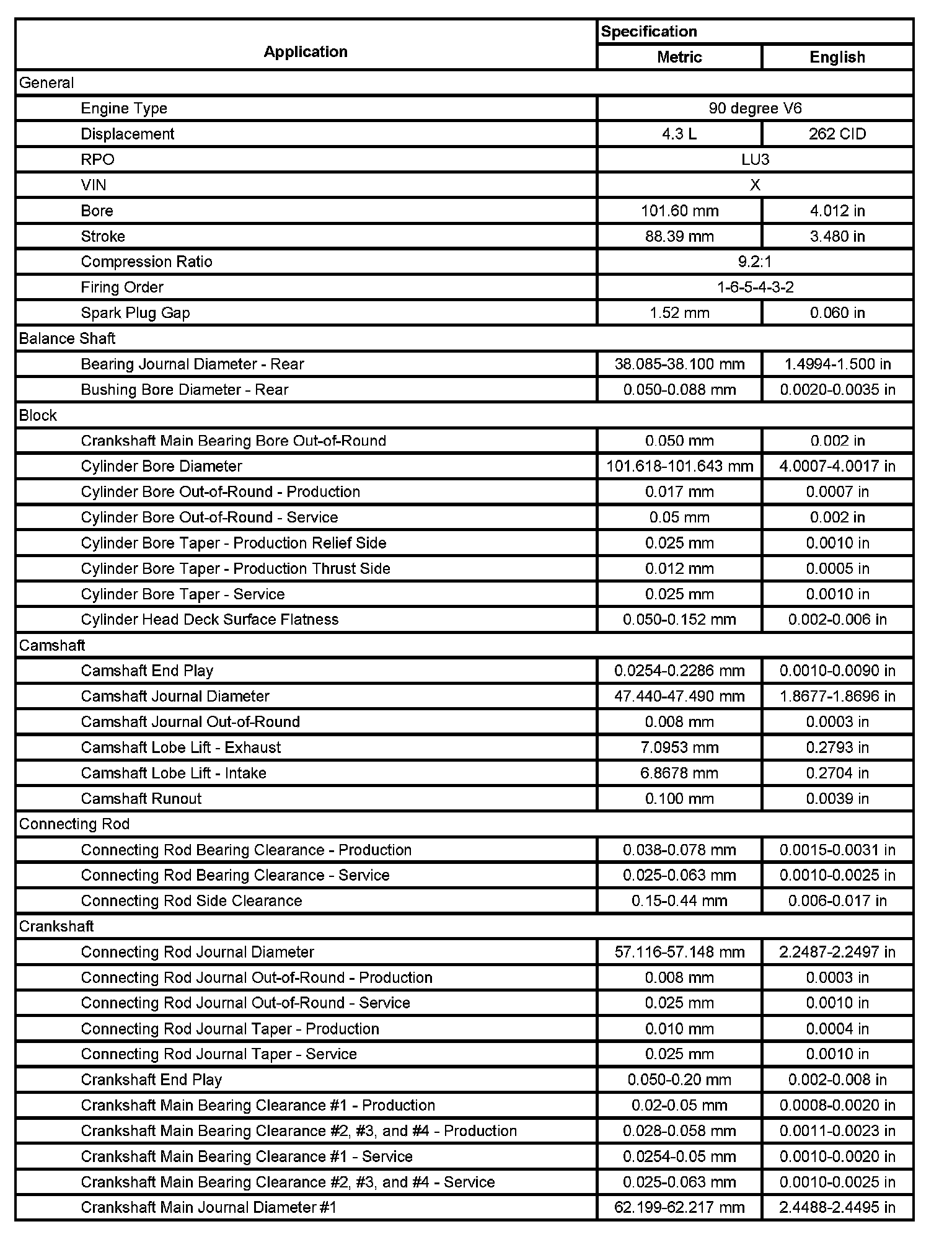 Engine Mechanical Specifications