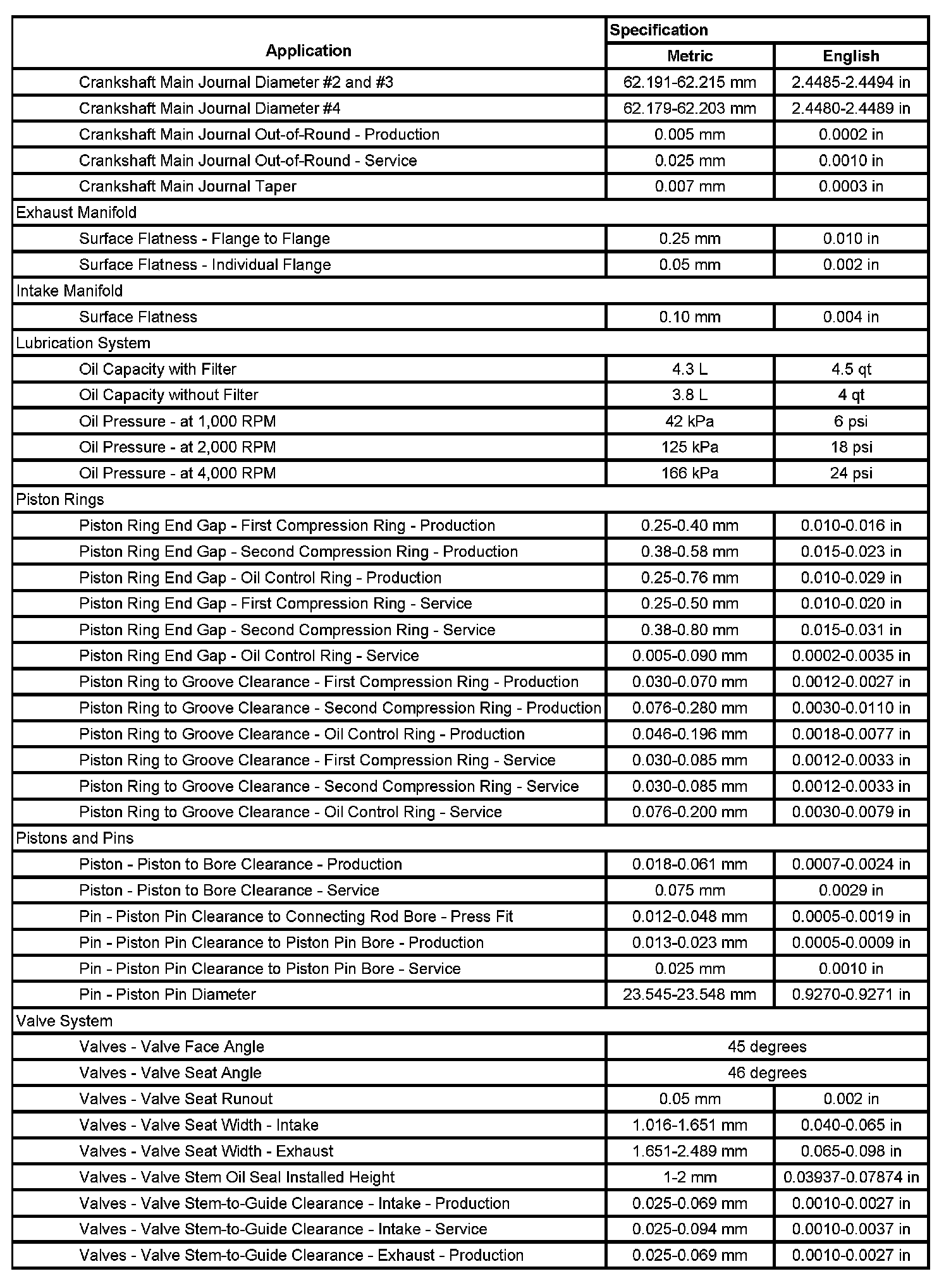 Engine Mechanical Specifications (Part 2):