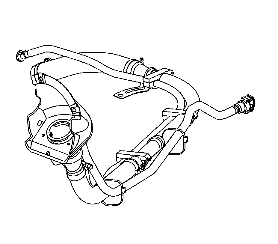 The fuel fill pipe has a built-in restrictor in order to prevent refueling with leaded fuel. When refueling dual tank applications, fuel is dispensed to both the front and rear fuel tanks at the same time. Once the fill vent is obstructed, fuel backs up the fill pipe and trips the dispensing nozzle. The front fuel tank vent runs into the rear tank to the top of the filler pipe assembly, which in turn vents to atmosphere. The fuel tank vent valves are connected and route to the canister to collect hydrocarbon emissions during operation of the vehicle.