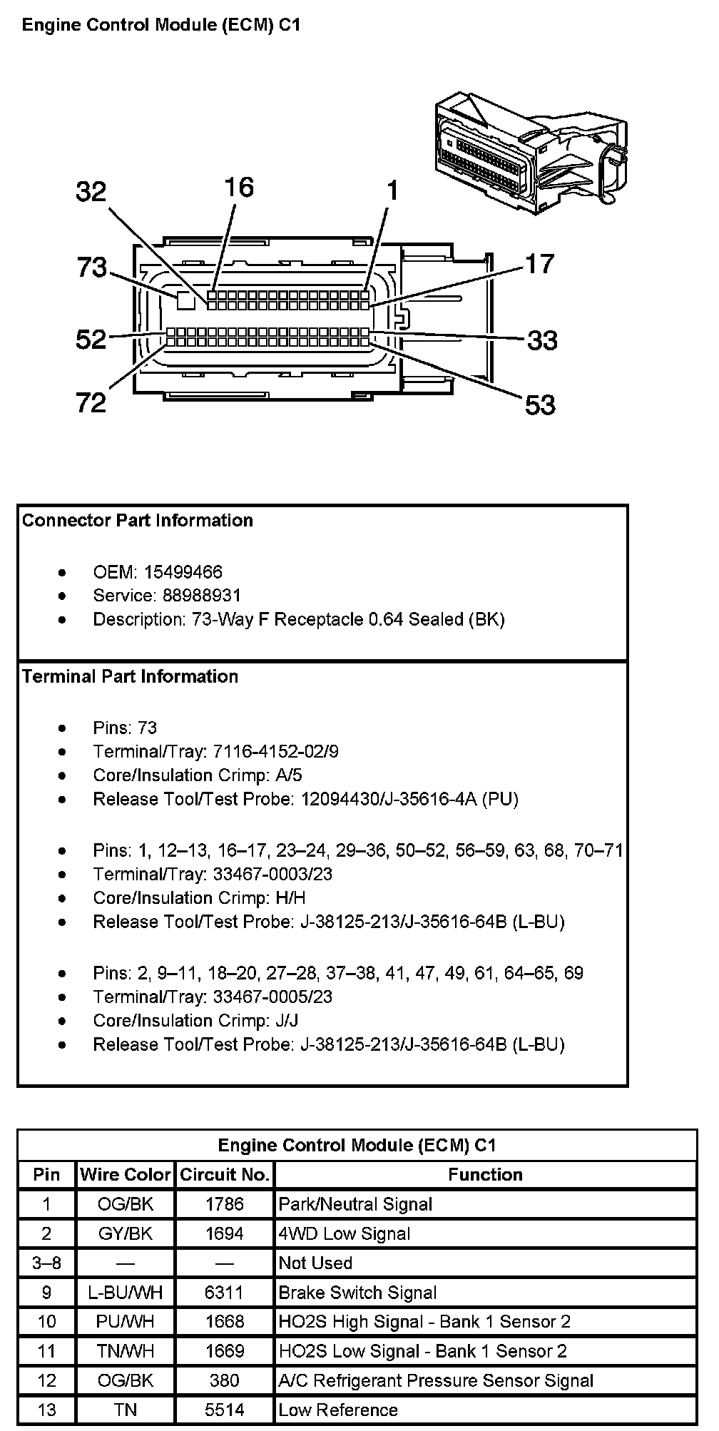 Engine Control Module (ECM) C1 (Pin 71 To 73):