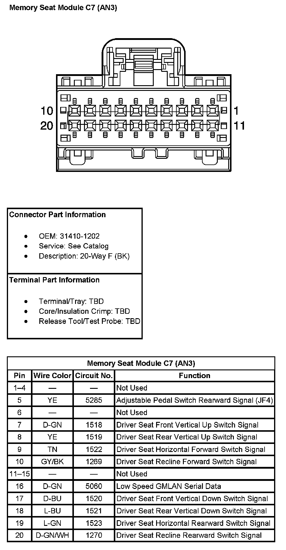 Memory Seat Module C7 (With RPO Code AN3):