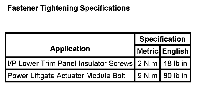 Fastener Tightening Specifications: