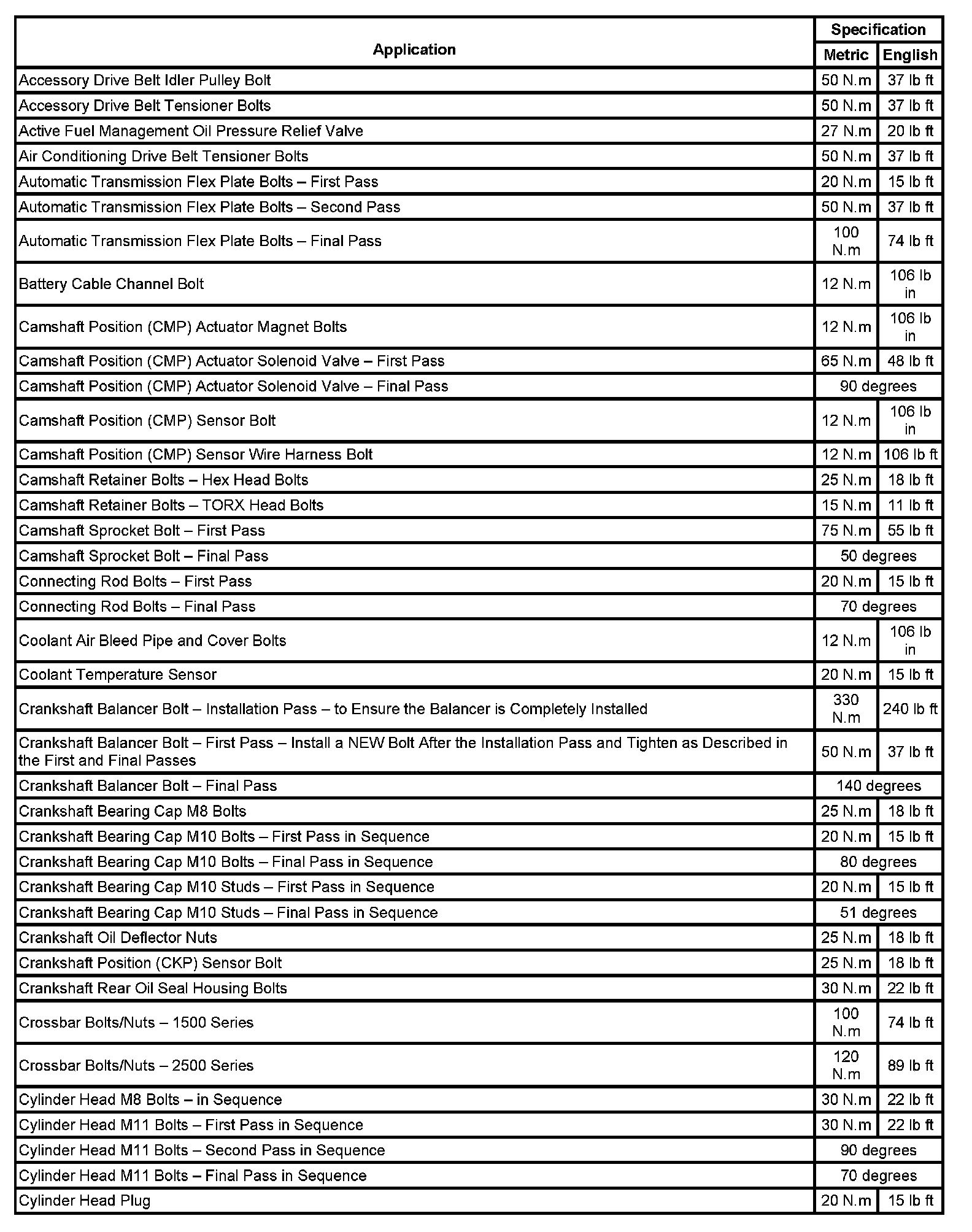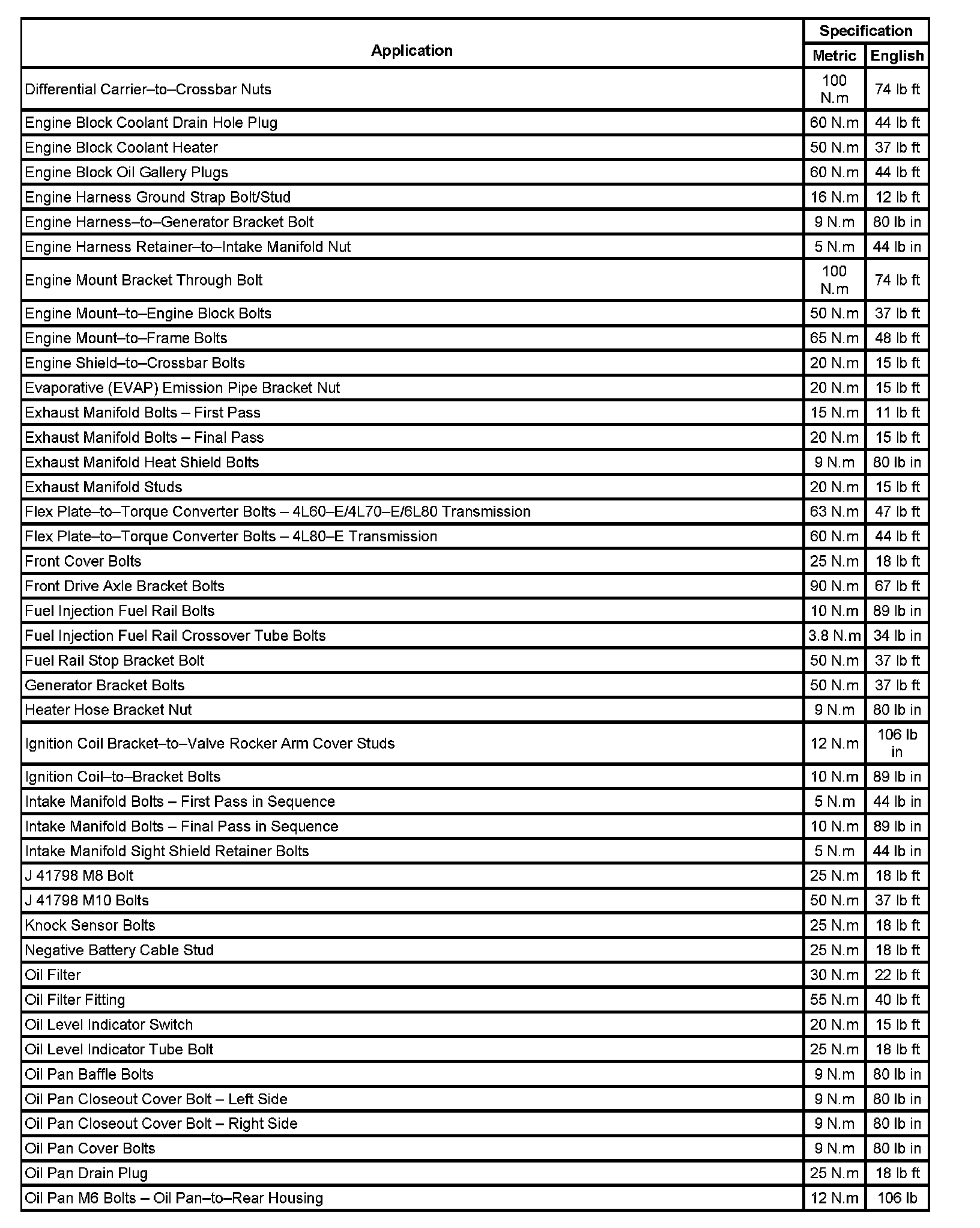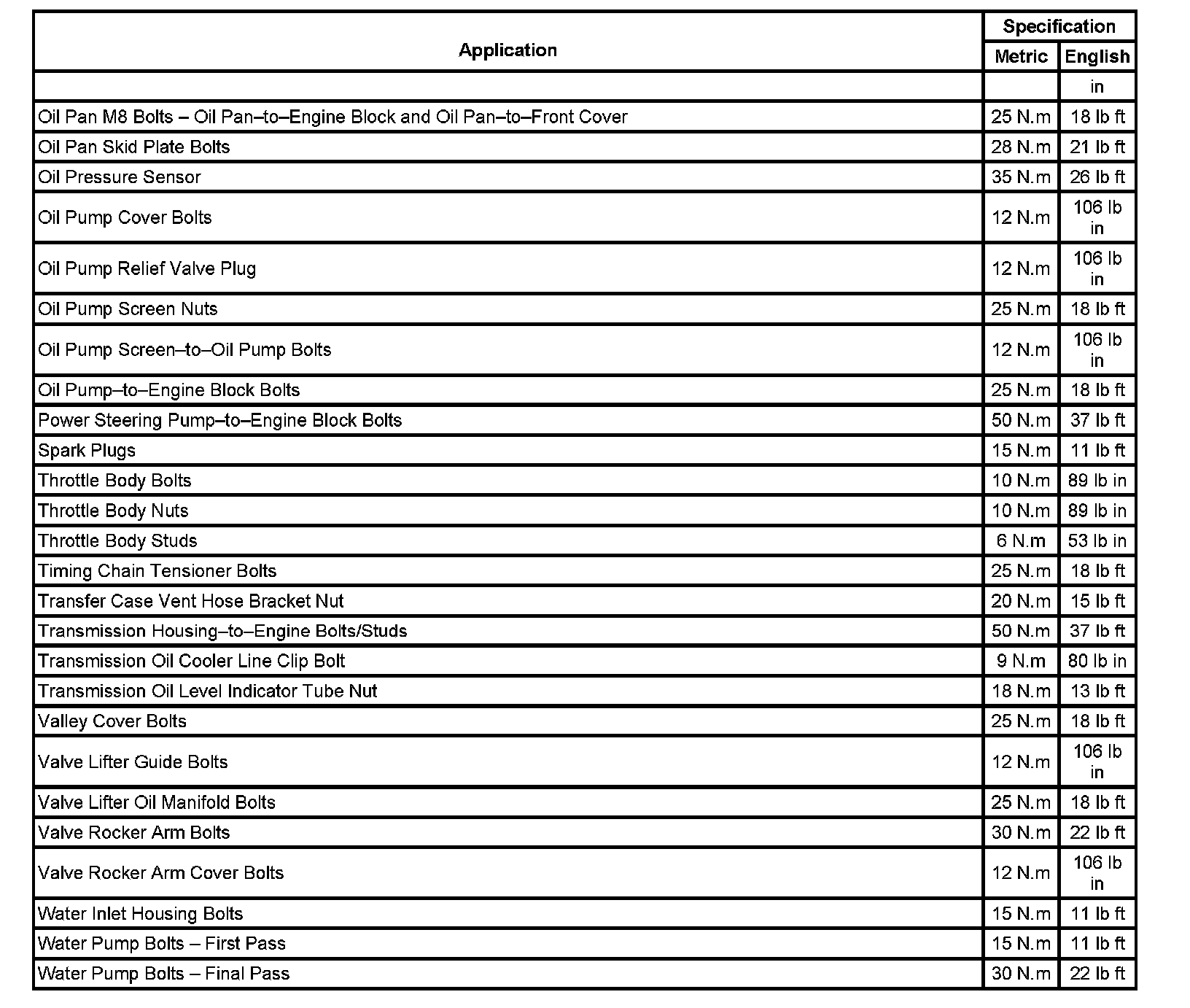 Fastener Tightening Specifications: