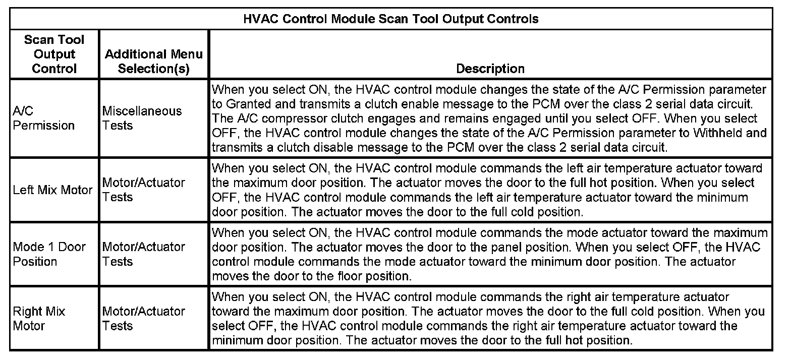 HVAC Control Module Scan Tool Output Controls:
