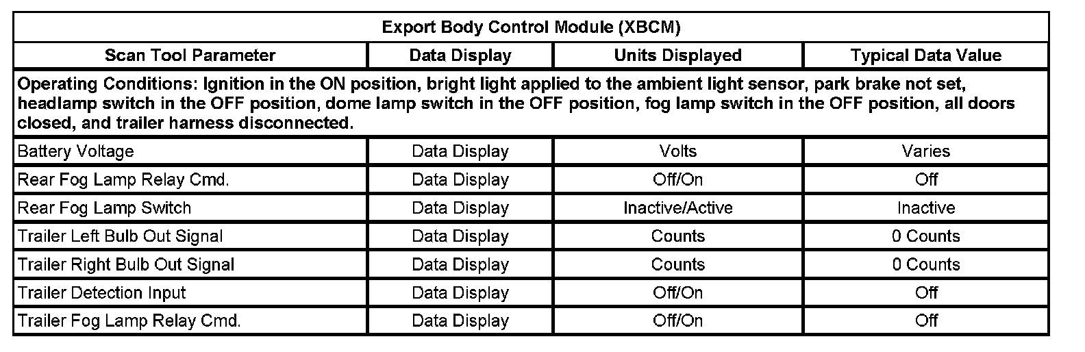 Export Body Control Module (XBCM):