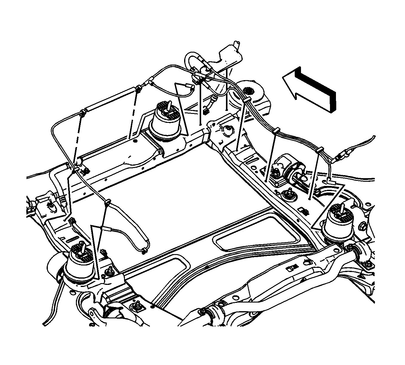 1.Install the engine and transmission mount vacuum hose retainers to the frame if the vehicle is equipped with the active mount control system.