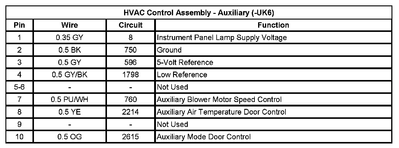 HVAC Control Assembly - Auxiliary (-UK6)