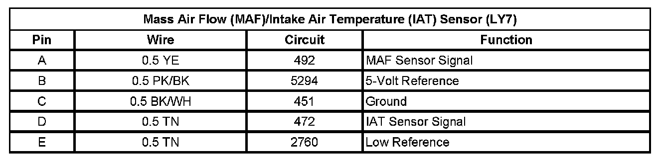 Mass Air Flow (MAF)/Intake Air Temperature (IAT) Sensor (LY7)