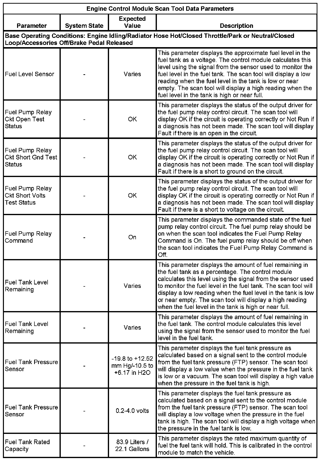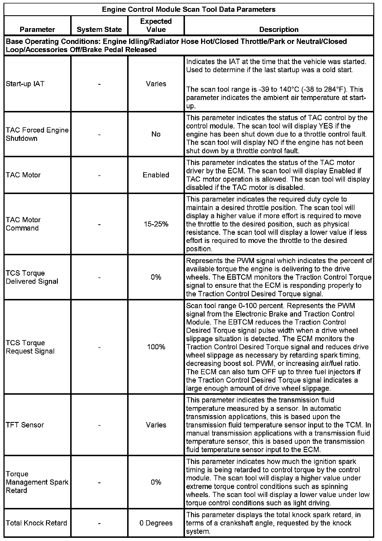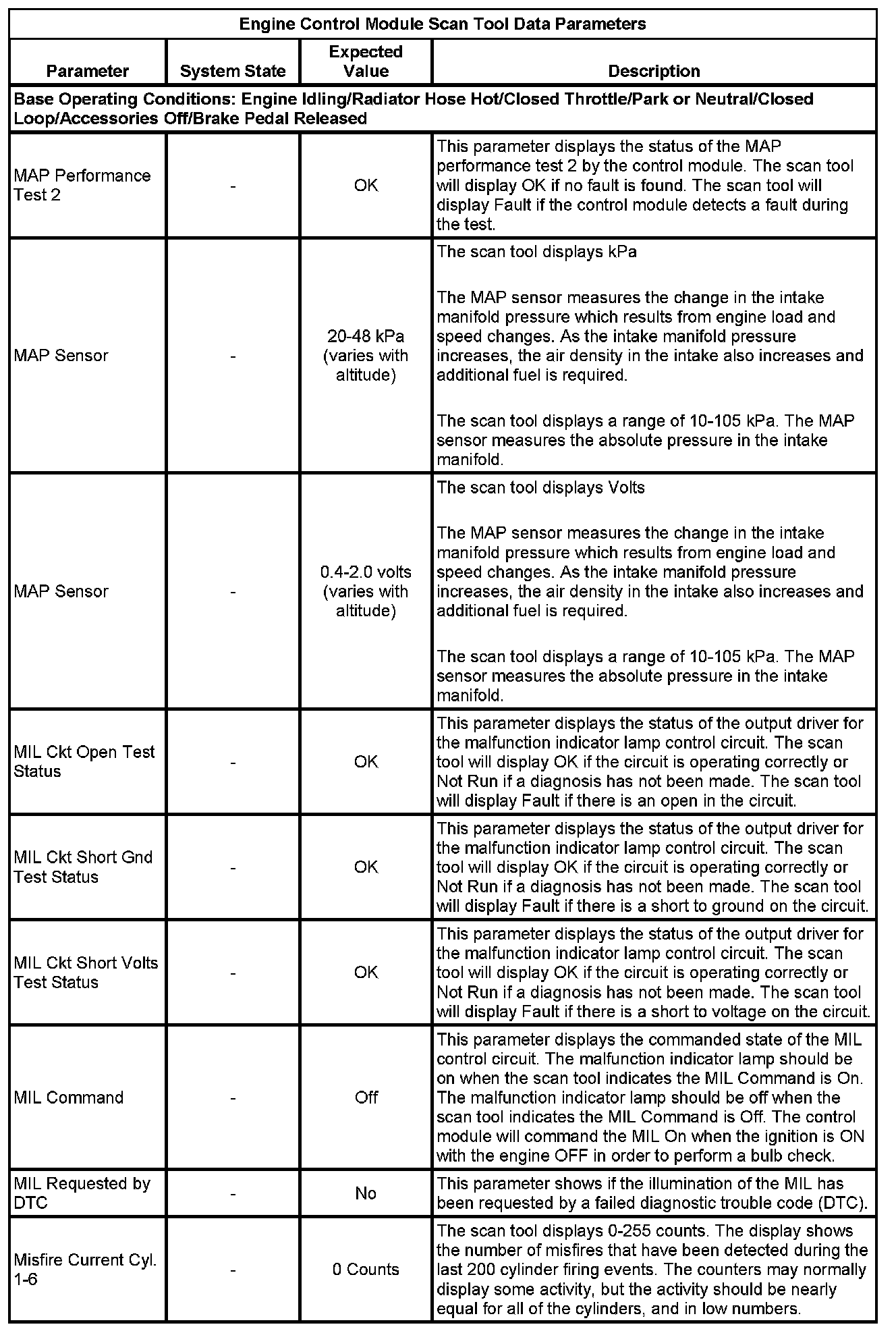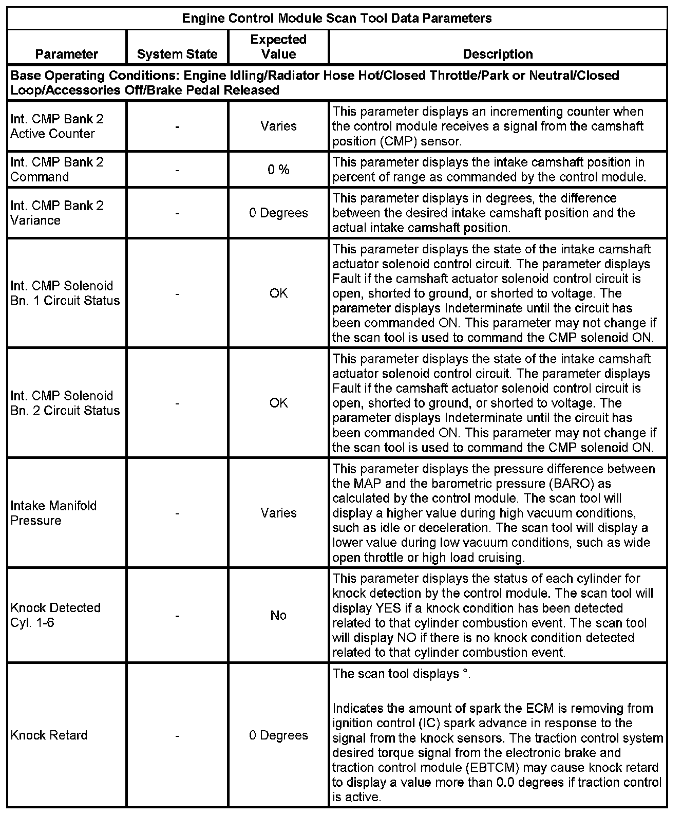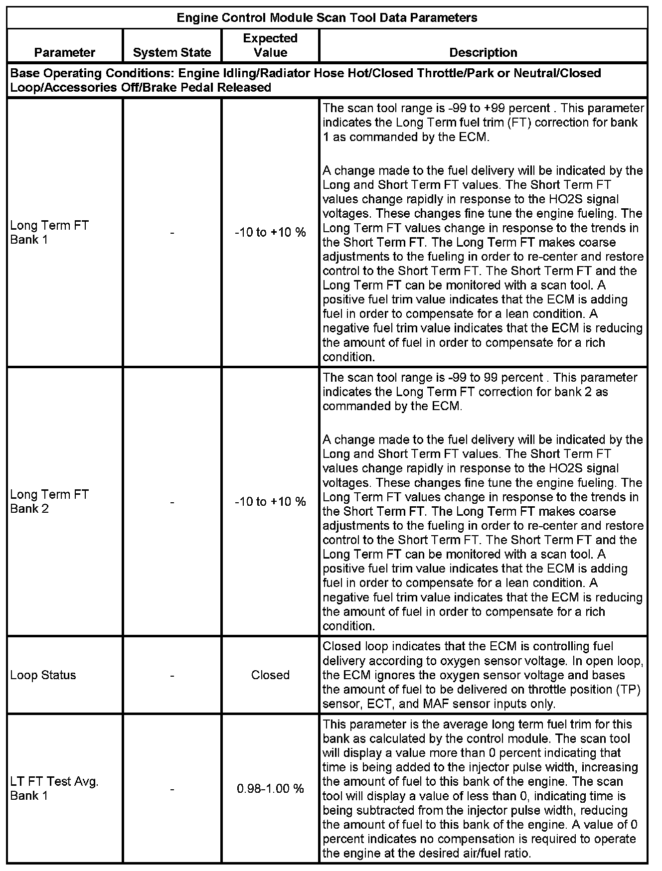 The Engine Control Module Scan Tool Data List contains all engine-related parameters that are available on the scan tool. The list is arranged in alphabetical order. A given parameter may appear in any one of the data lists, and in some cases may appear more than once, or in more than one data list in order to group certain related parameters together.