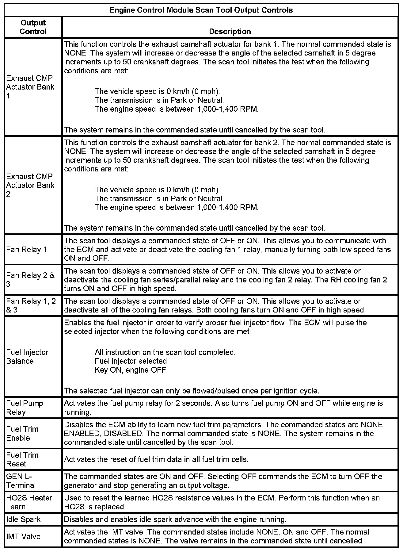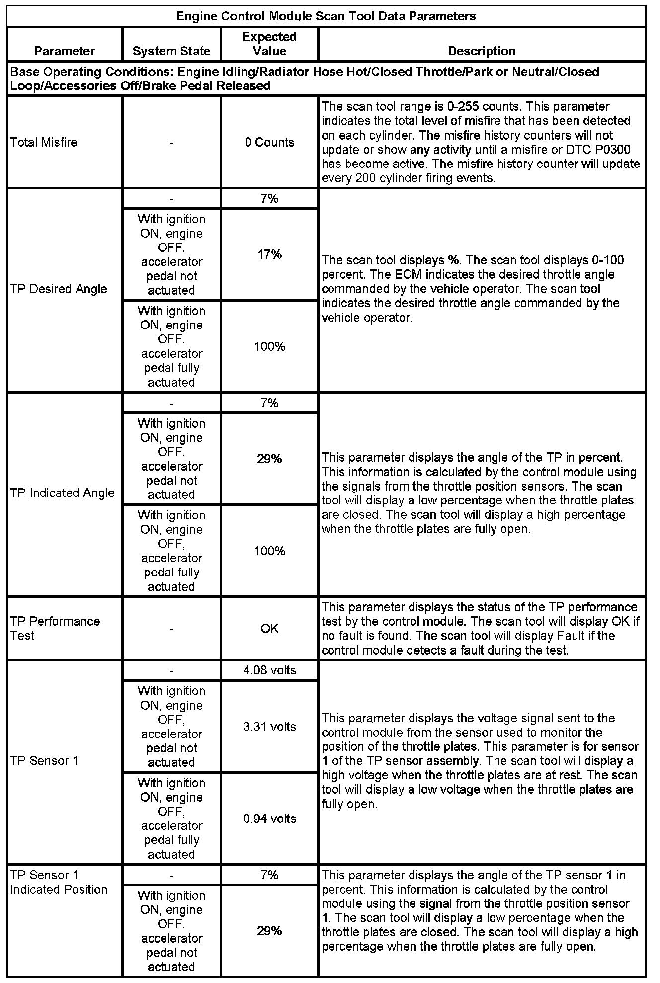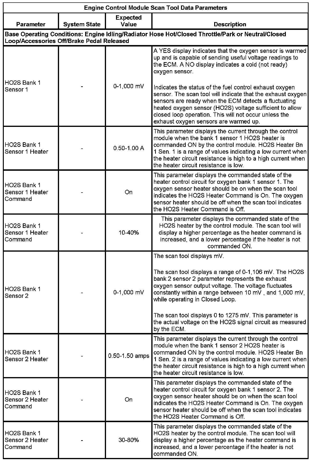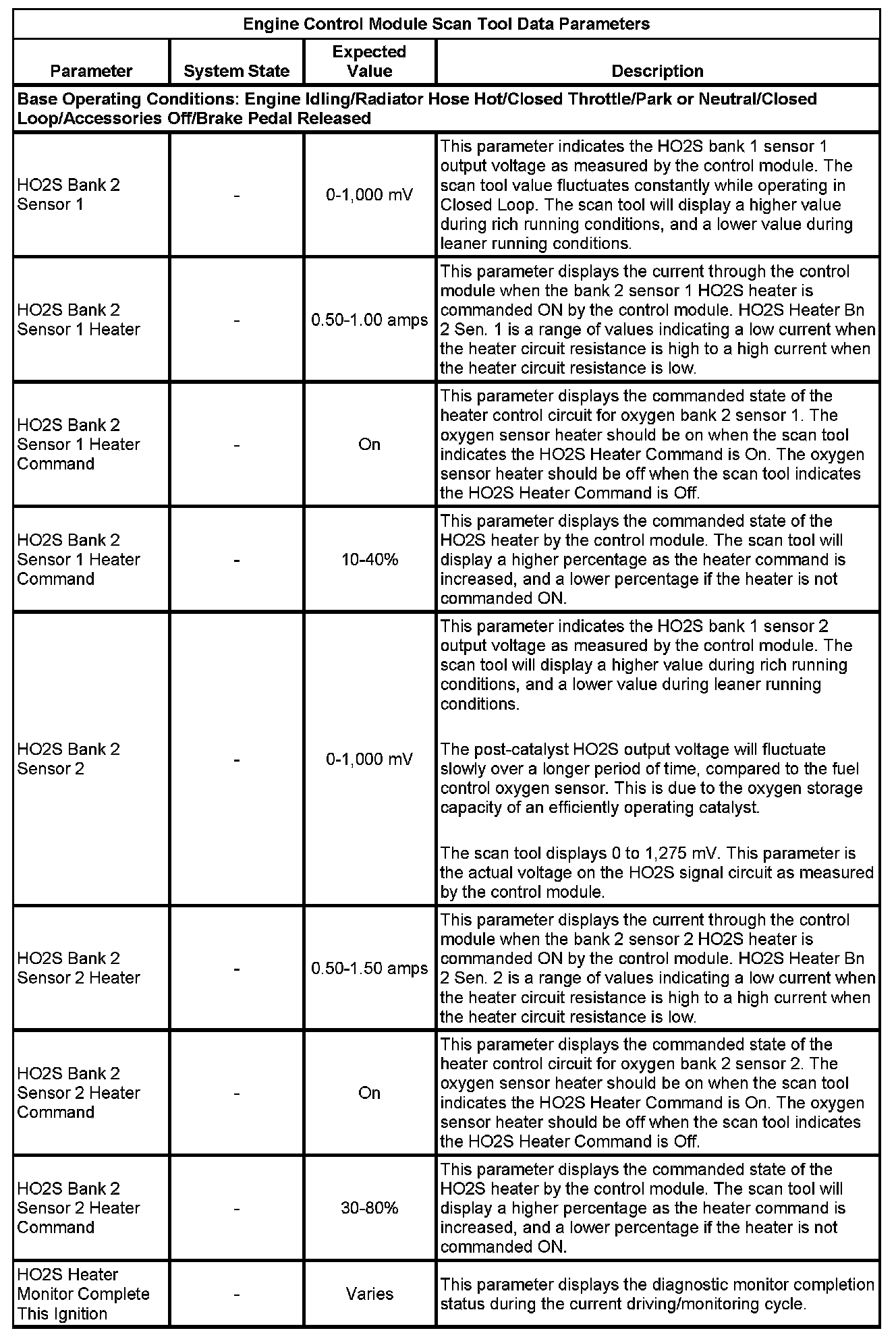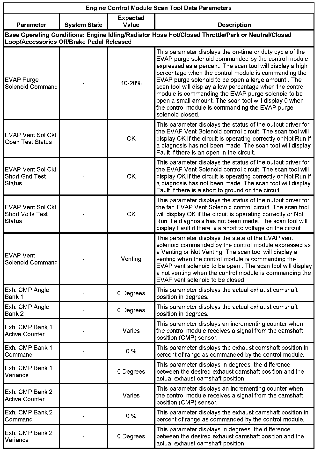 The Engine Control Module Scan Tool Data List contains all engine-related parameters that are available on the scan tool. The list is arranged in alphabetical order. A given parameter may appear in any one of the data lists, and in some cases may appear more than once, or in more than one data list in order to group certain related parameters together.