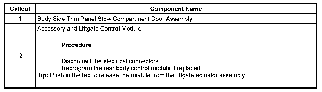 Accessory and Liftgate Control Module Replacement (Acadia)