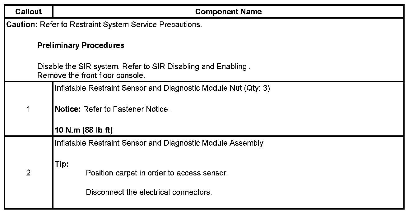 Inflatable Restraint Sensing and Diagnostic Module Replacement
