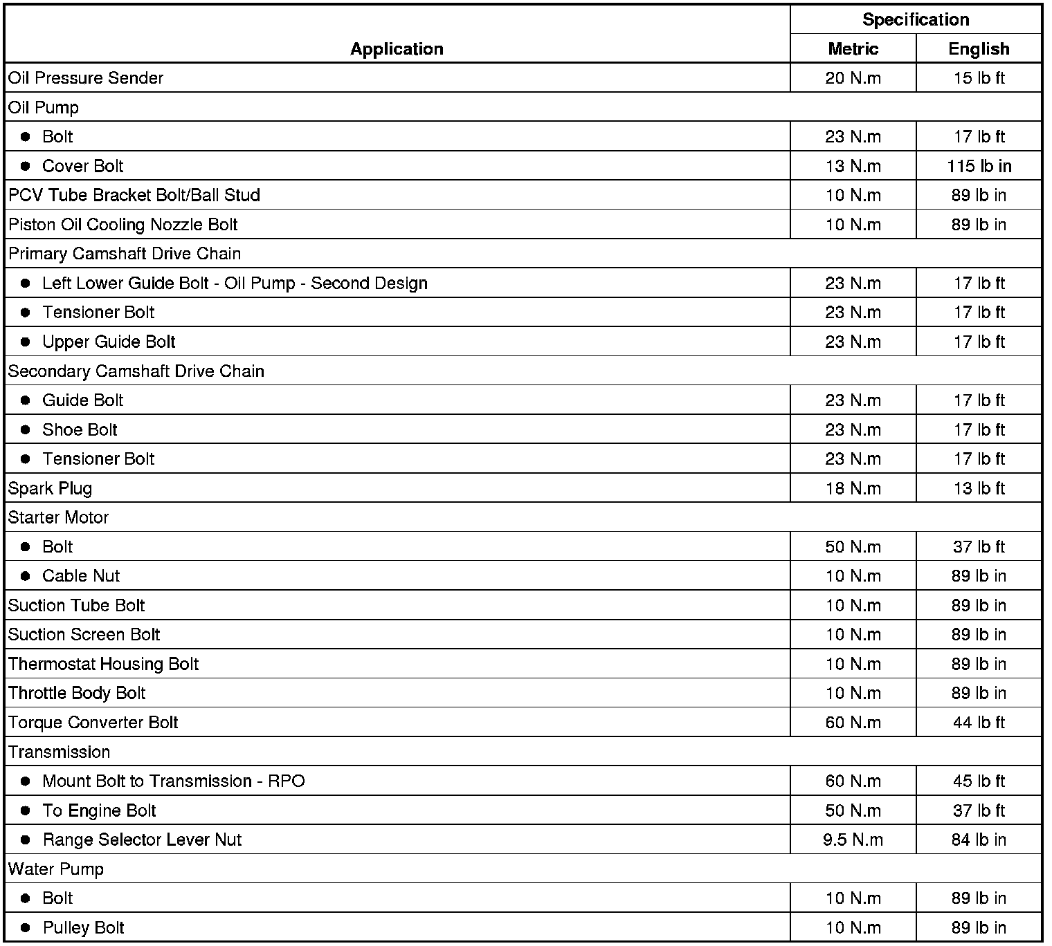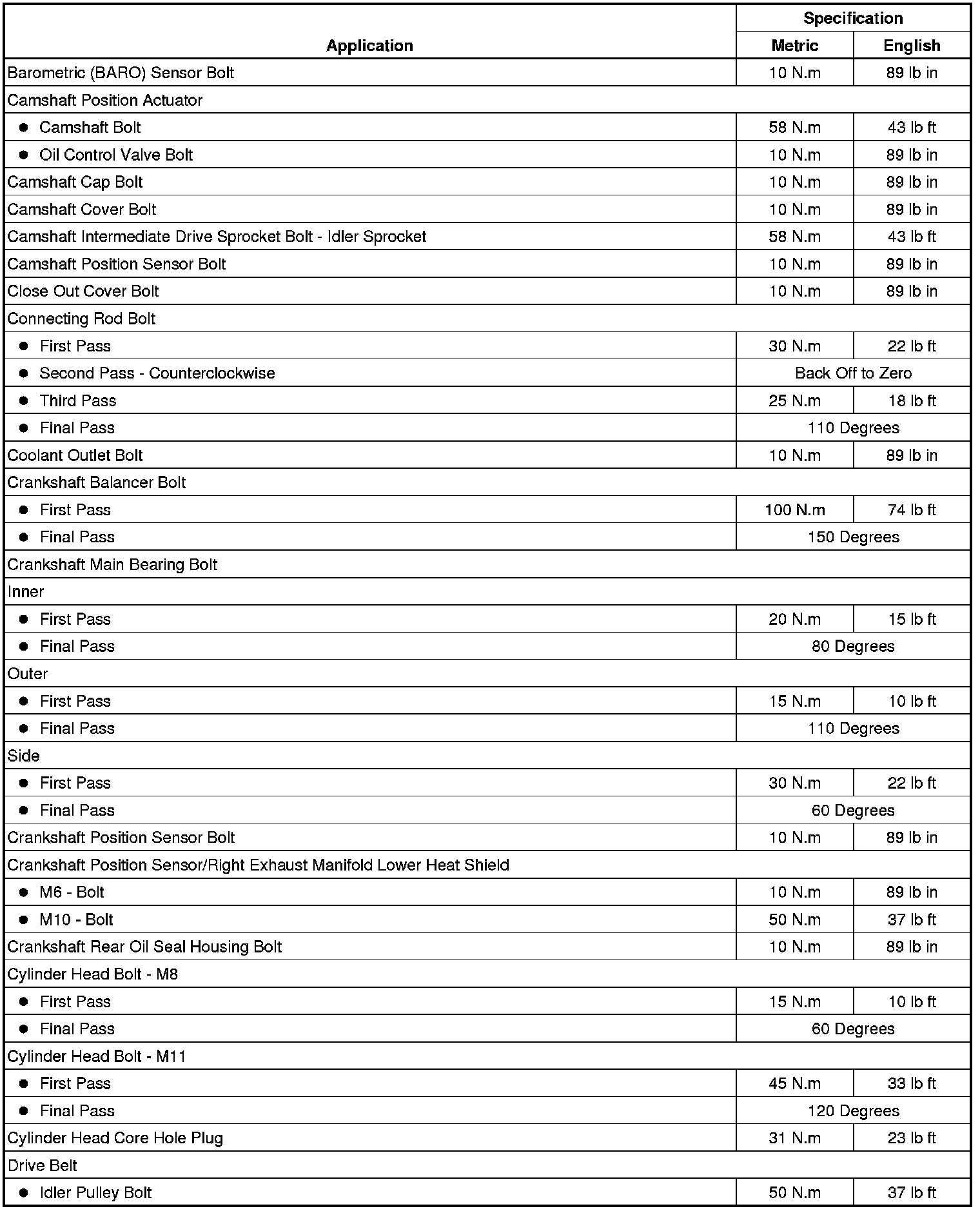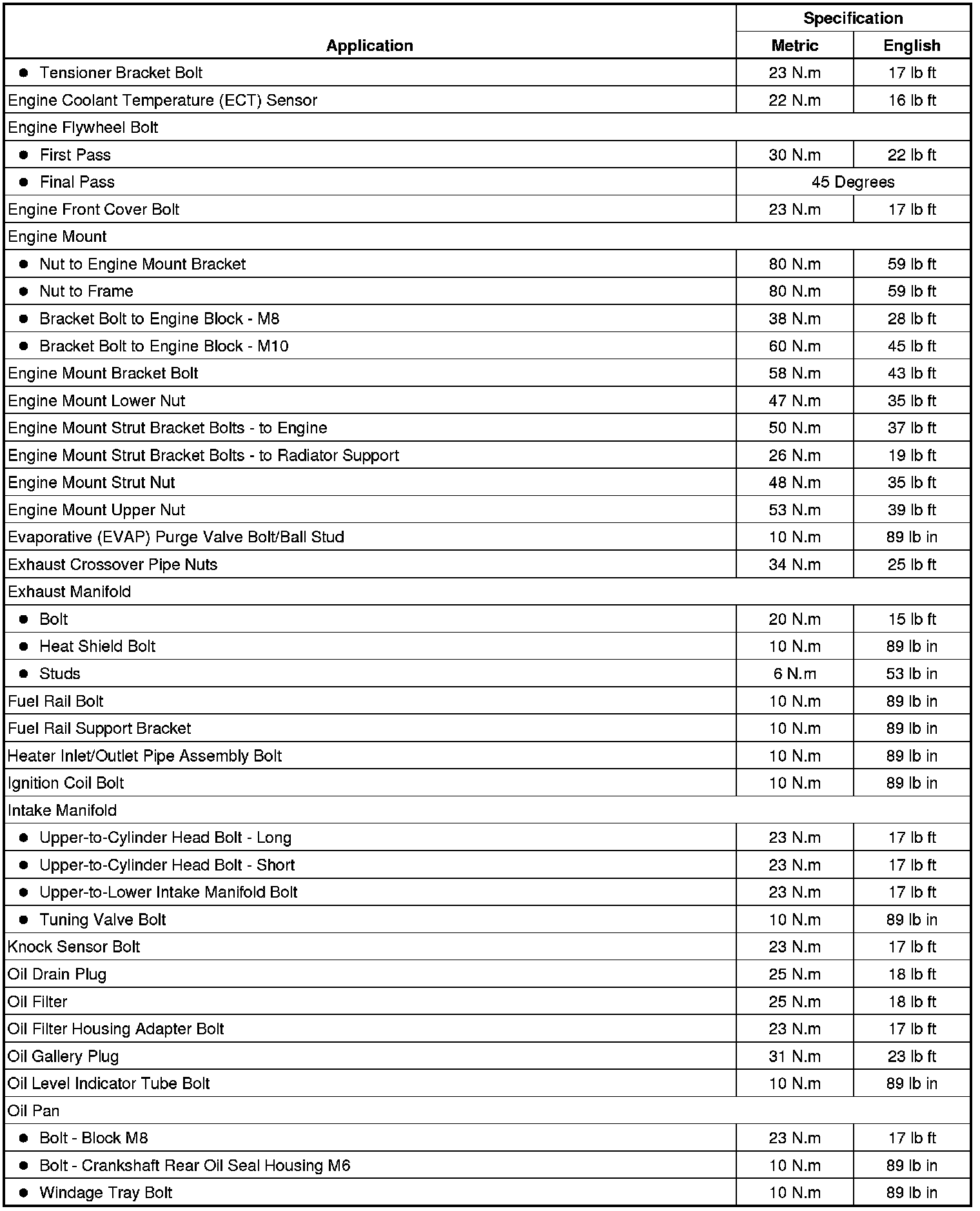 Fastener Tightening Specifications