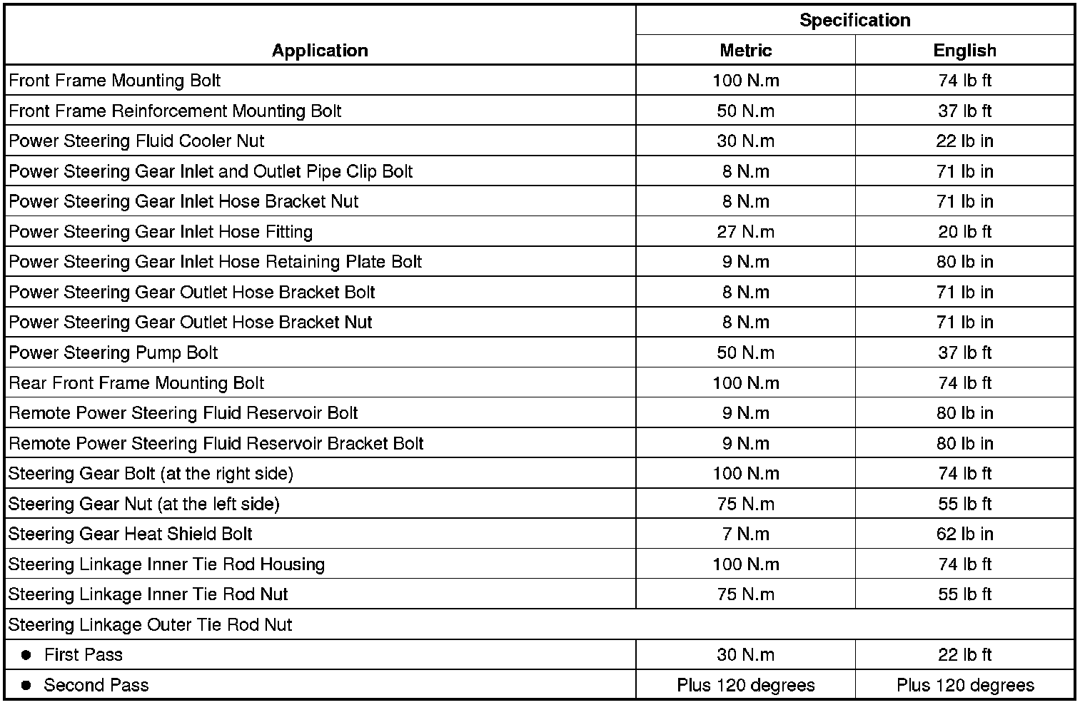 Fastener Tightening Specifications