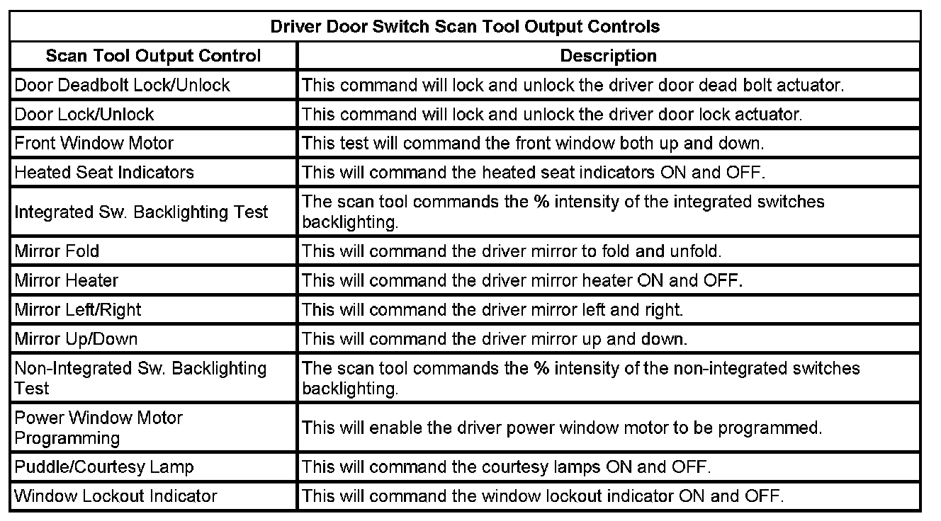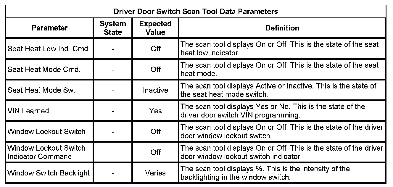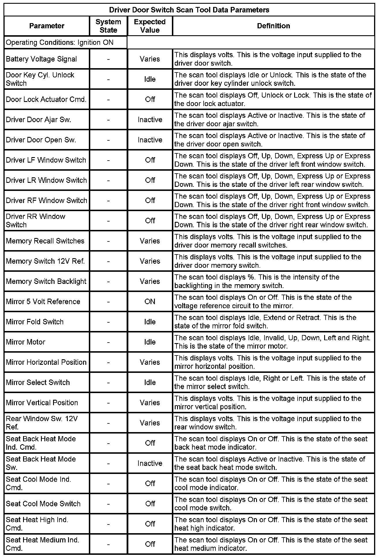 Door Lock Control Module Scan Tool Information (Driver Door Switch)