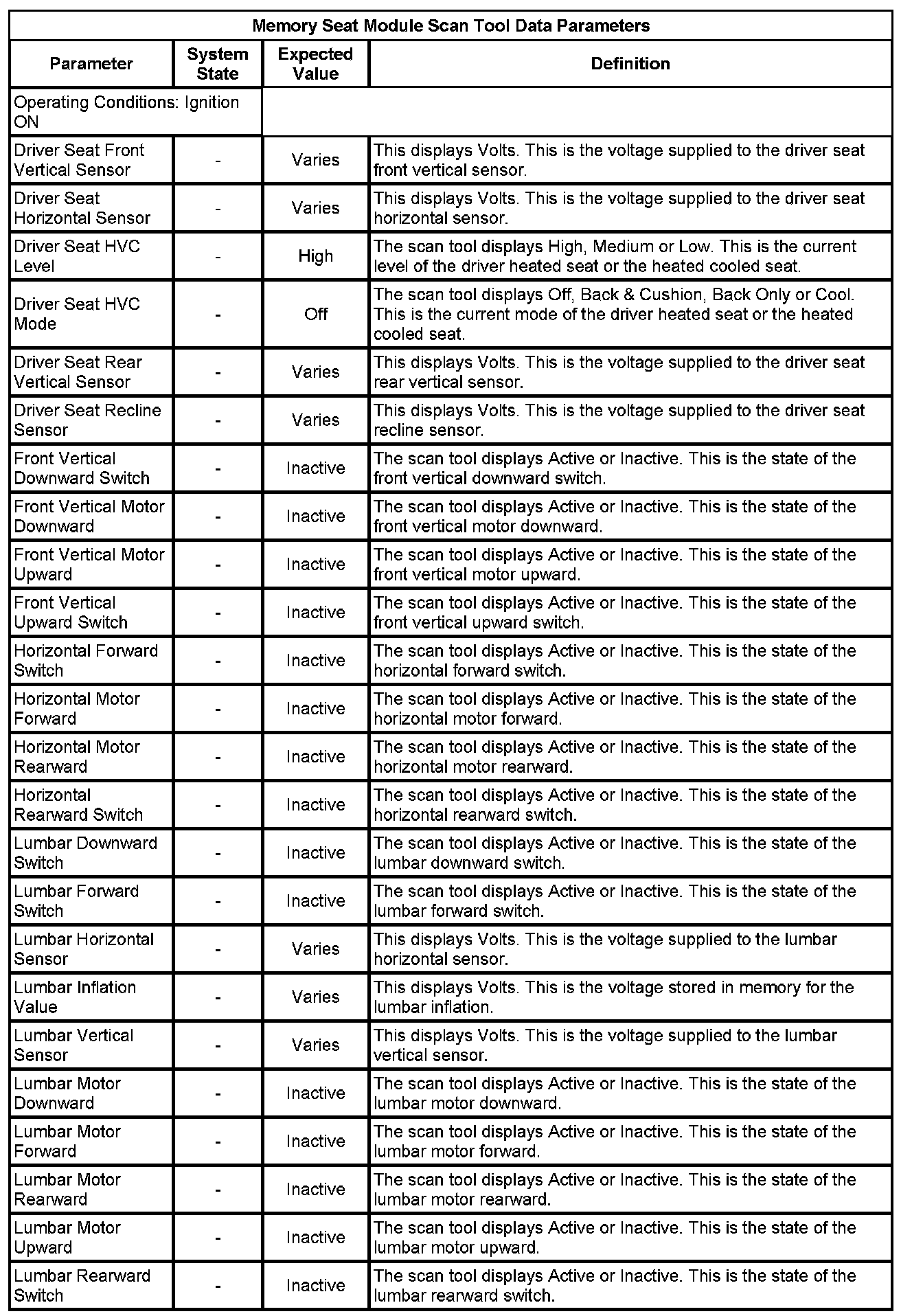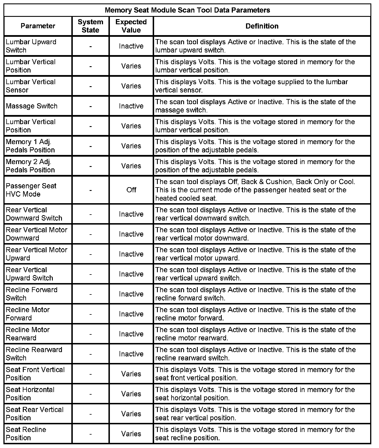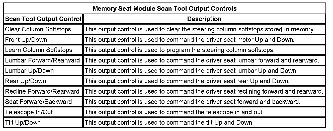 Driver Seat Adjuster Memory Module Scan Tool Information