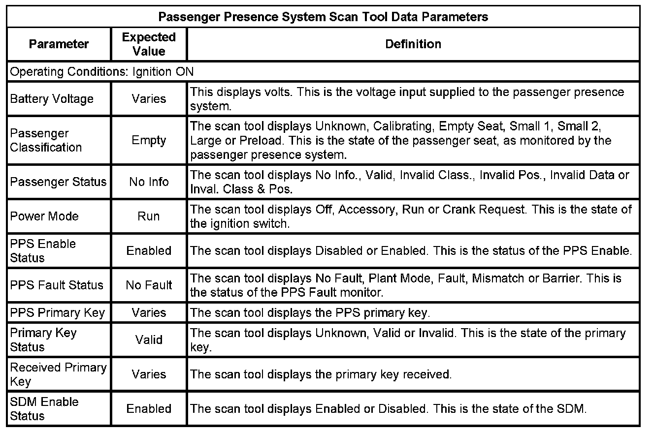 Inflatable Restraint Passenger Presence System Scan Tool Information