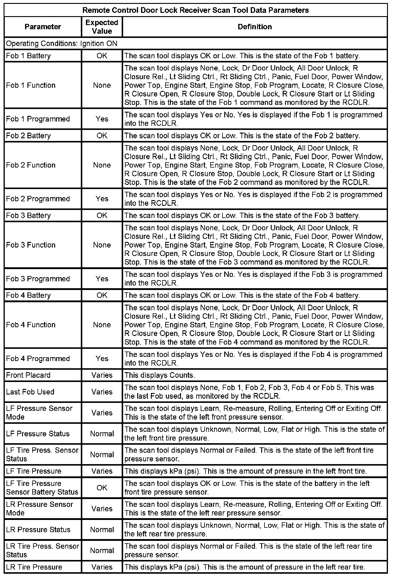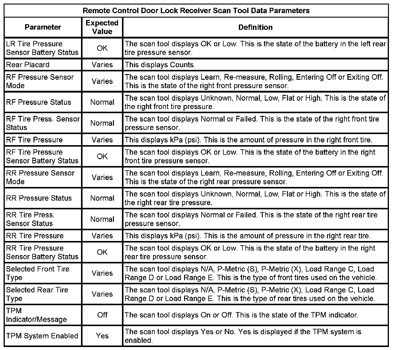 Door Lock Receiver Scan Tool Information