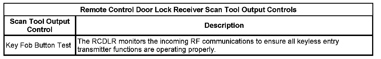 Remote Control Door Lock Receiver Scan Tool Information