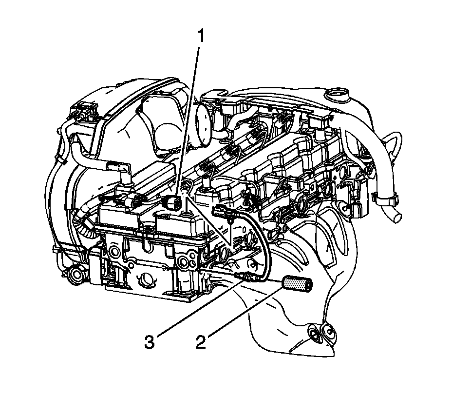4. Using the J 45861 (2) carefully remove the ECT sensor (3) from the cylinder head.