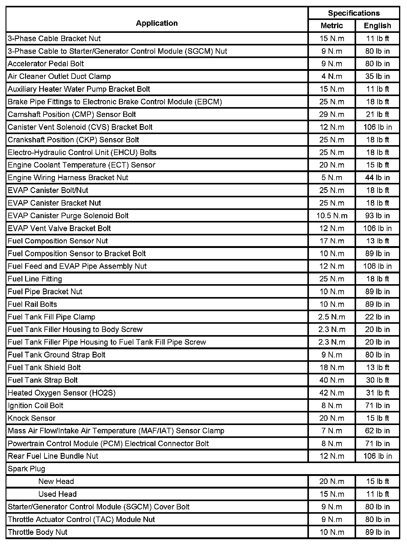 Fastener Tightening Specifications