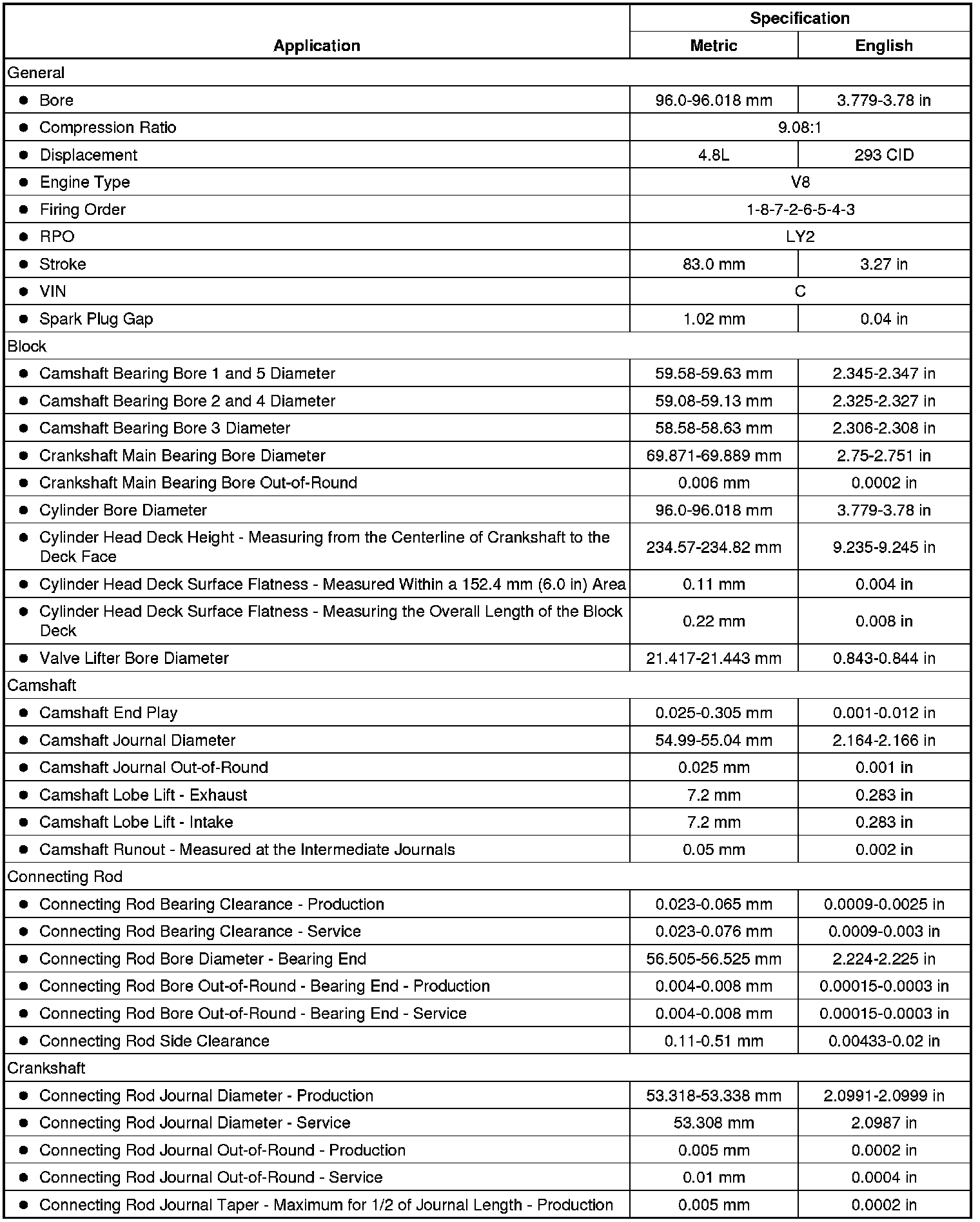 Engine Mechanical Specifications (RPO LY2 VIN C)