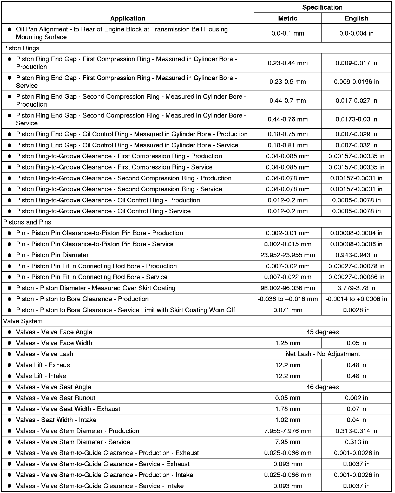 Engine General Specifications & Service Limits