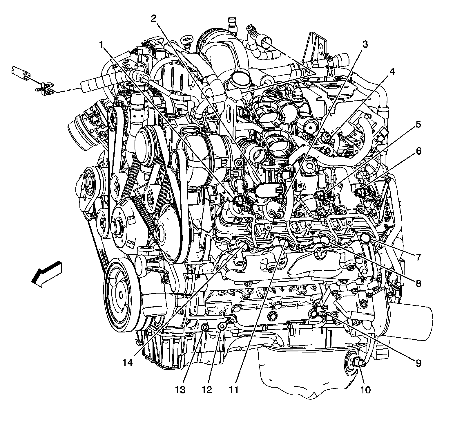Left Front Side of the Engine Components (4.8L/5.3L/6.0L/6.2L except LFA/HP2)
