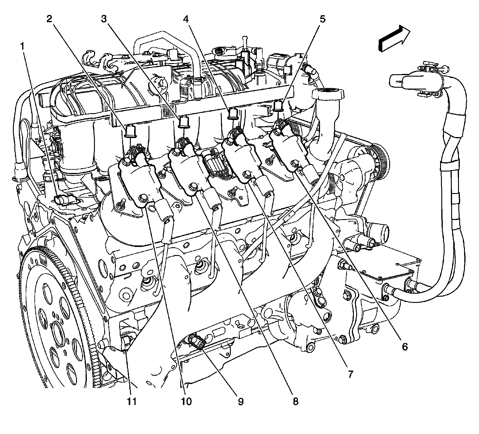 Right Side of the Engine Components (4.8L/5.3L/6.0L/6.2L except LFA/HP2)