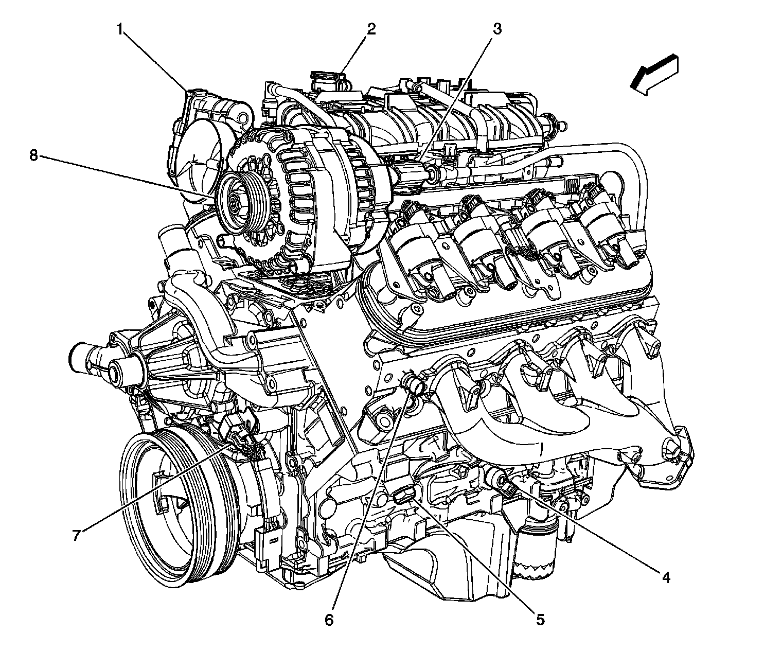Right Side of the Engine Components (4.8L/5.3L/6.0L/6.2L except LFA/HP2)
