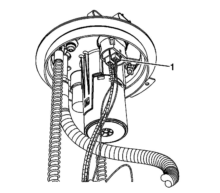 2. Disconnect the fuel level sensor wiring pigtail electrical connector (1) from the module cover.