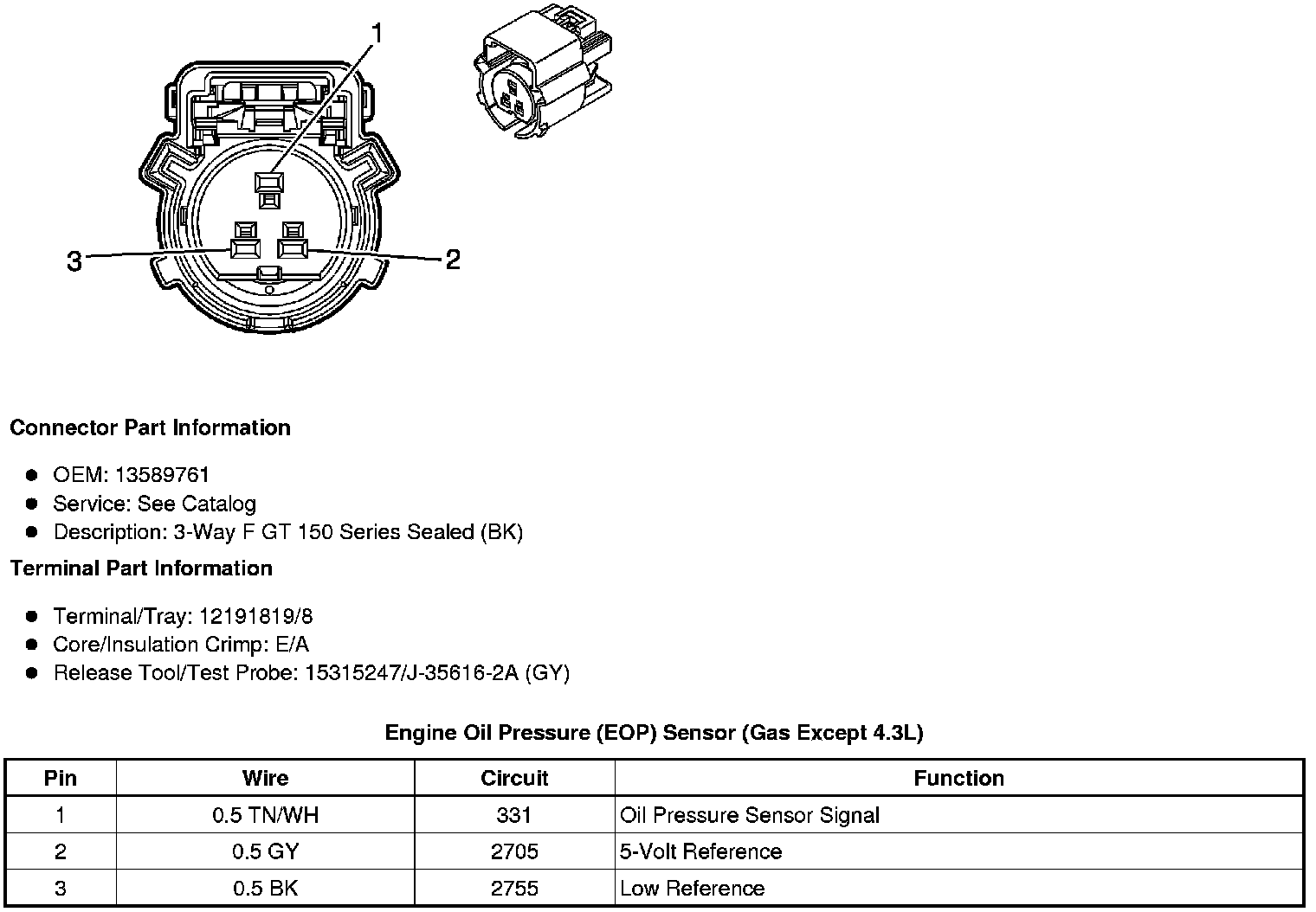 Engine Oil Pressure (EOP) Sensor (Gas Except 4.3L)