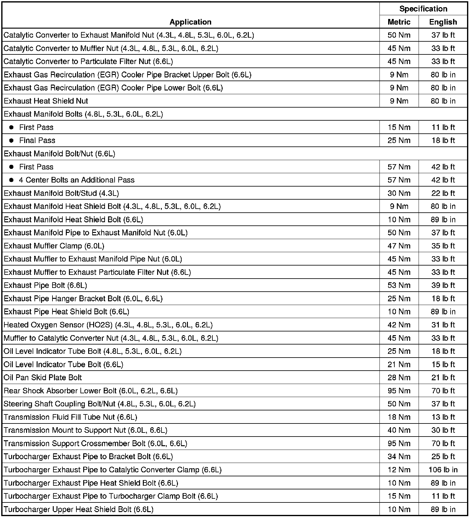 Fastener Tightening Specifications