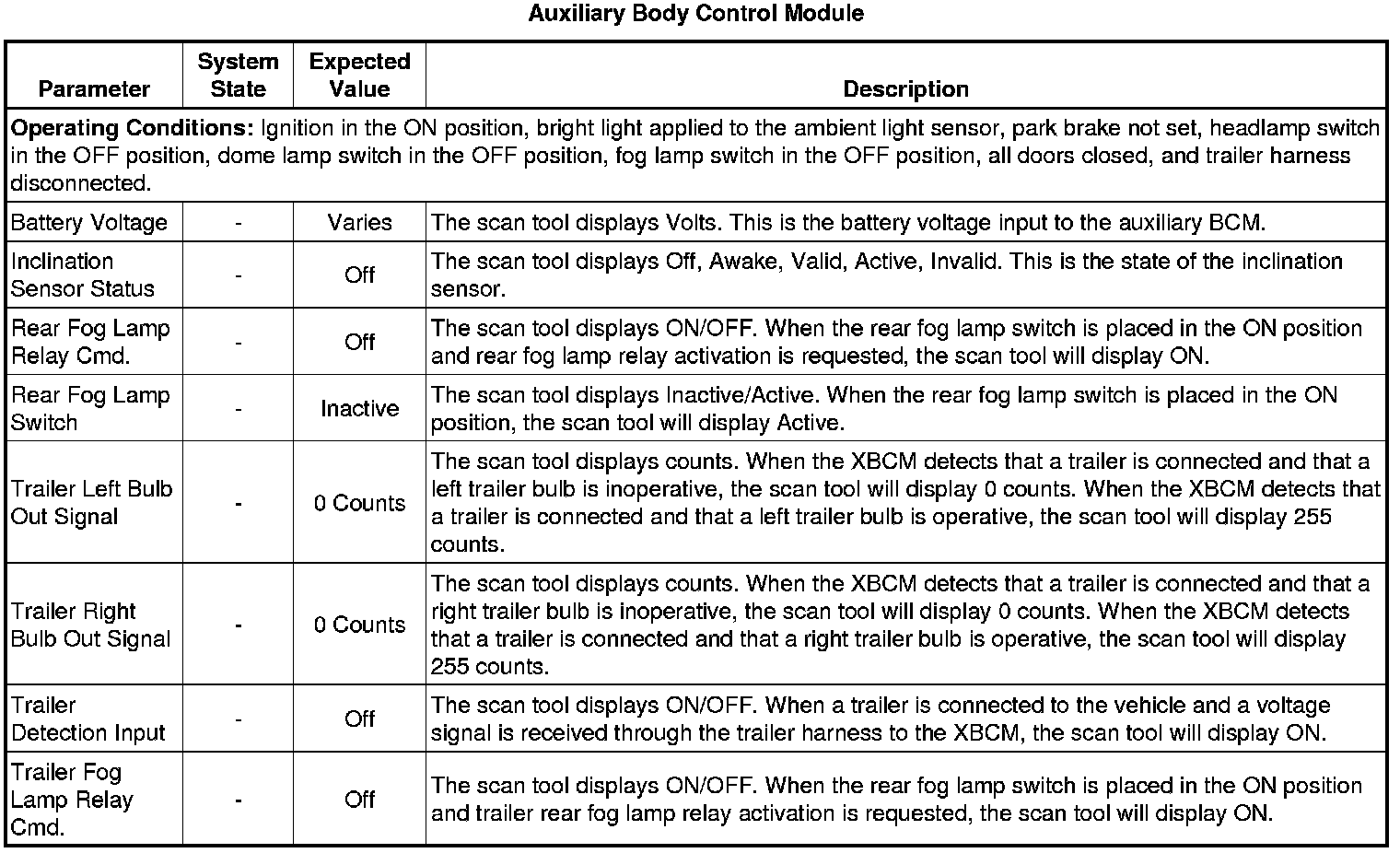 Auxiliary Body Control Module Scan Tool Information