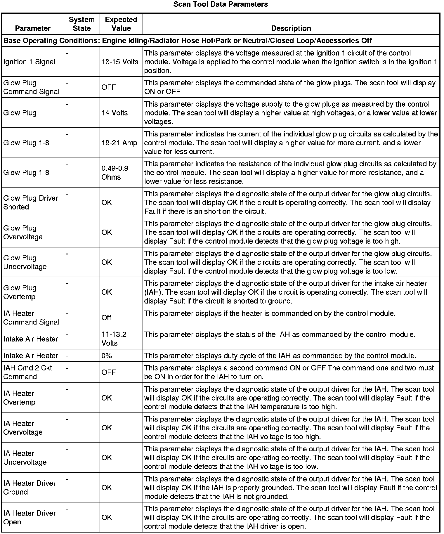 Glow Plug Control Module Scan Tool Information