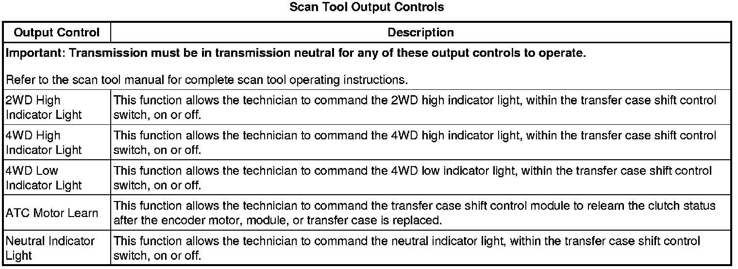 Transfer Case Shift Control Module Scan Tool Information
