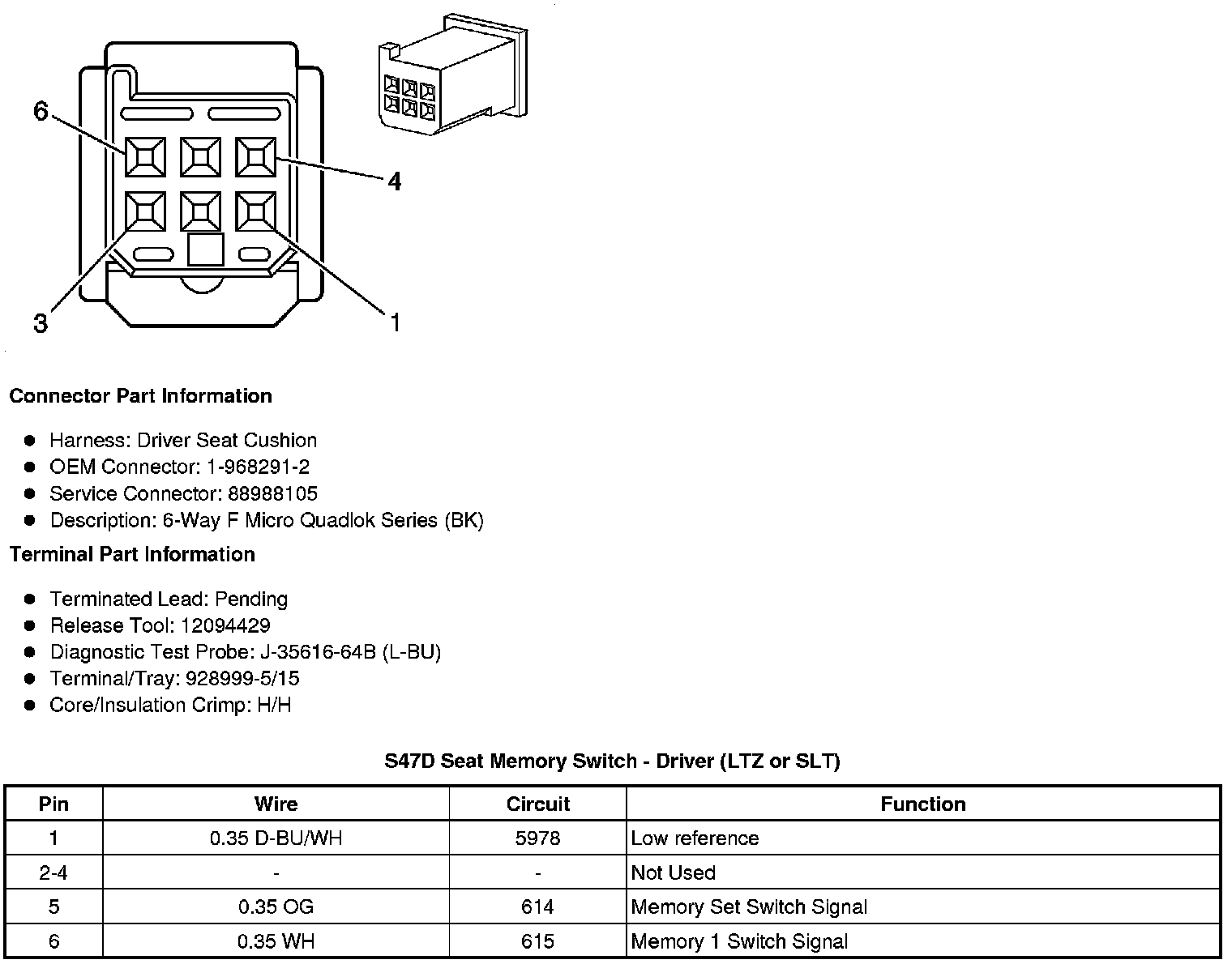 S47D Seat Memory Switch - Driver (LTZ or SLT)
